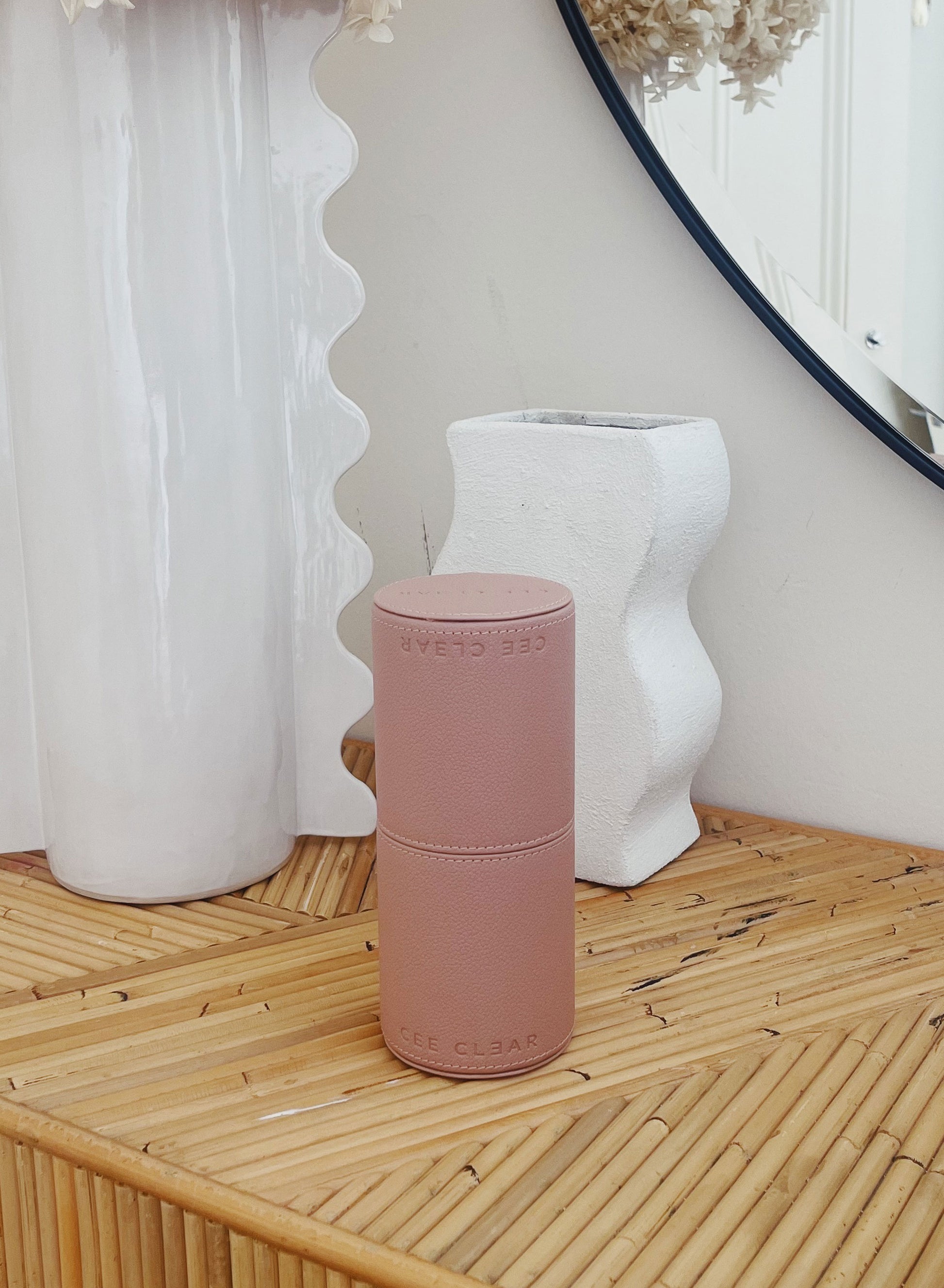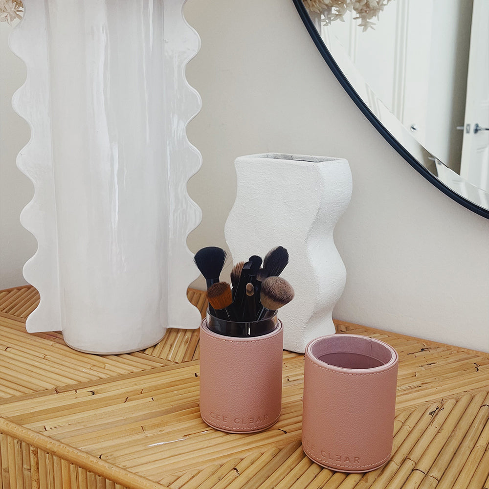 The CEE CLEAR Makeup Brush Holder in Natural is a sleek, cylindrical case to keep your brushes safe, and ready to slay.